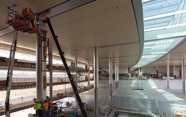 施工中的新蘋果總部,看起來確實有高天棚的開放式空間