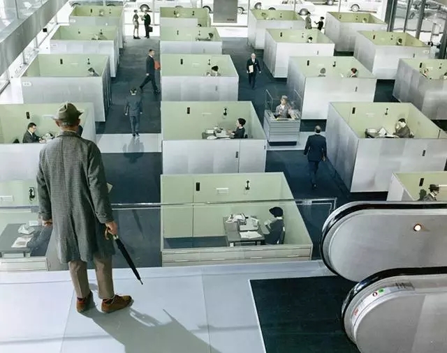 電影《玩樂時間》中的鏡頭,壓抑封閉的辦公空間曾被認為是限制創(chuàng)造力的原因