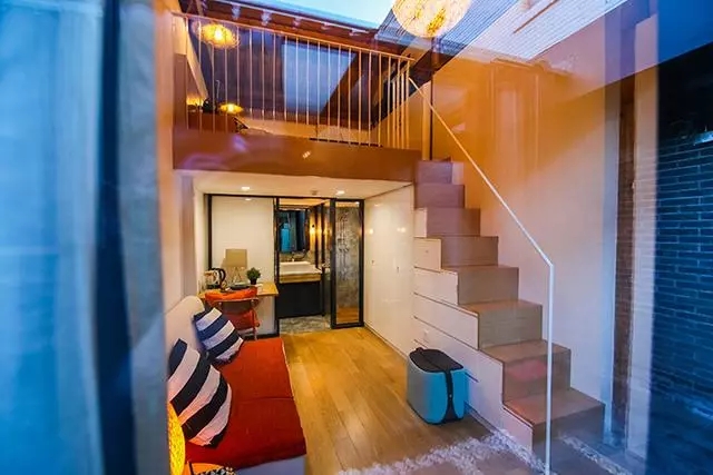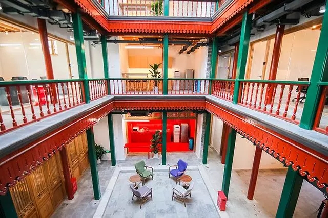 “共享際”是一座原理有點類似青年公寓的共享租房空間,圖為位于前門的打磨場共享際,每間住房為上下兩層的LOFT空間