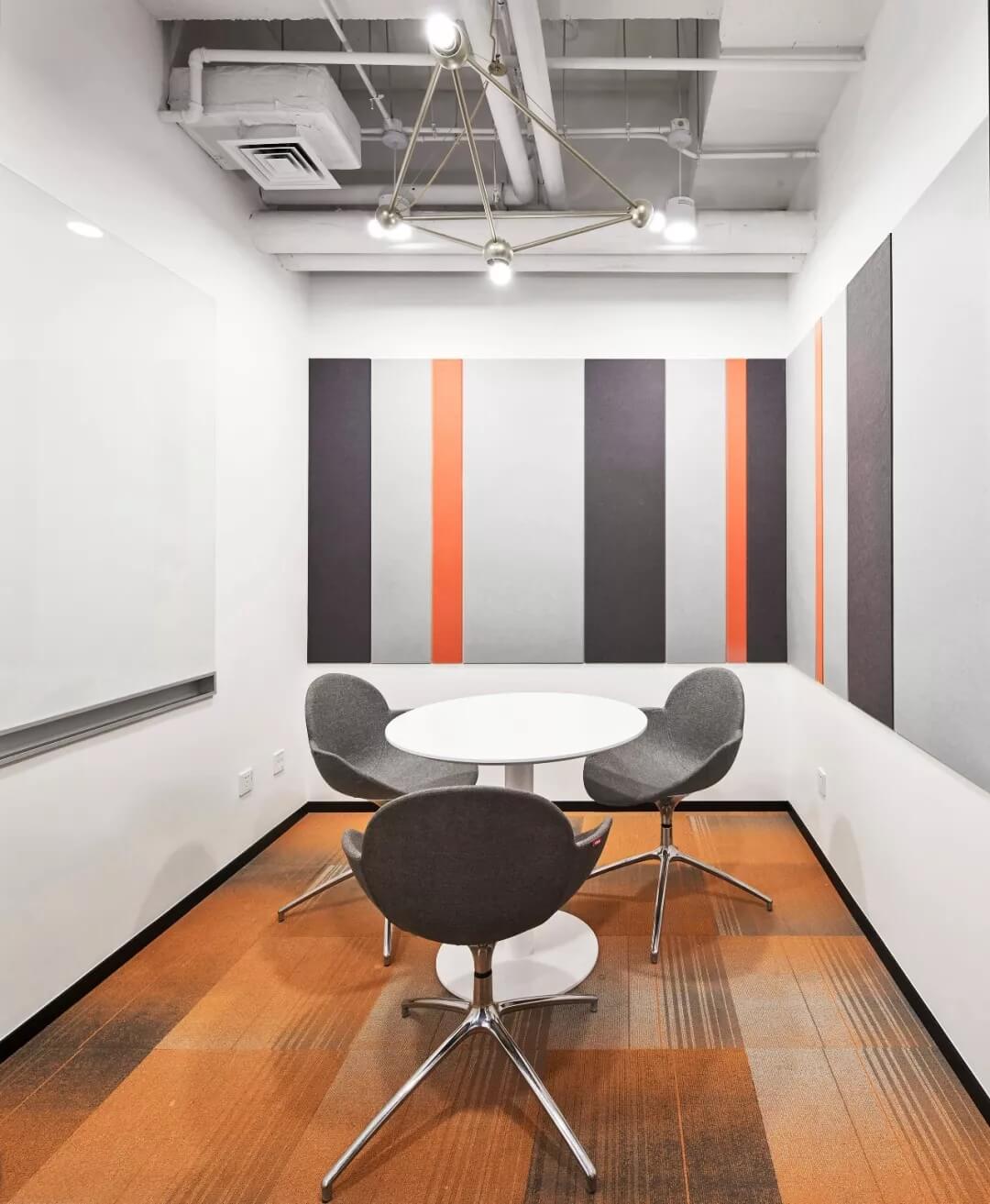 核心筒是整個辦公空間的混合功能區(qū),頻繁產生互動式交流,頭腦風暴,也是重要的會客及自由移動式辦公區(qū)。在設計上,艾迪爾設置了滿足不同會客需求的休閑討論區(qū),連接著標準辦公區(qū)和公共通道,營造多層次交流氛圍,體現(xiàn)商湯科技開放包容的文化價值觀。