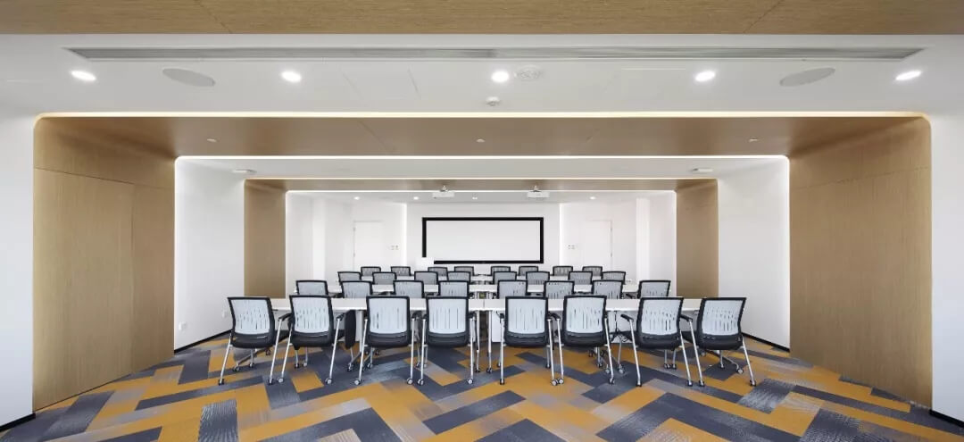 六層多功能培訓室兼文化展示區(qū)可以舉辦小型演講、討論會等活動,既是公司內部集體活動場所,也能夠面向公眾及社會開展其他相關功能性的活動。