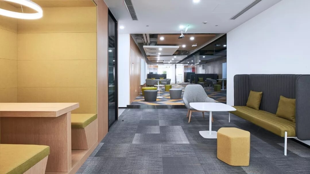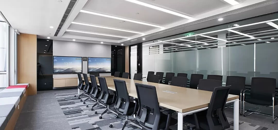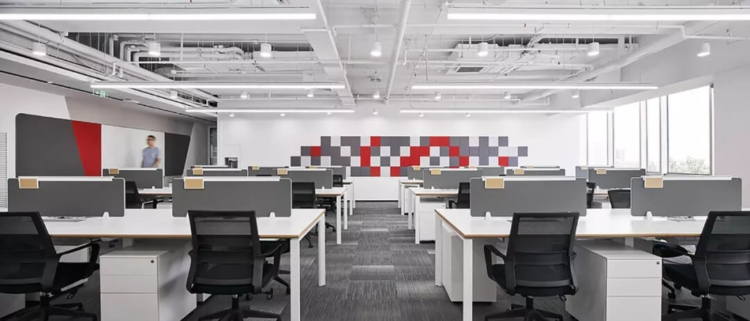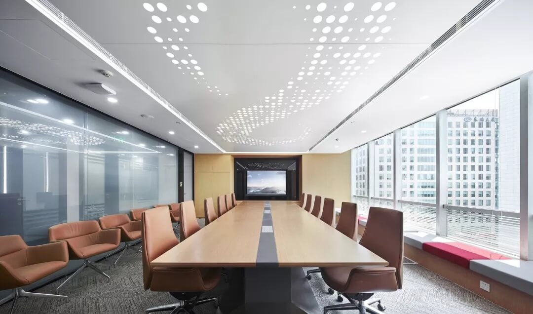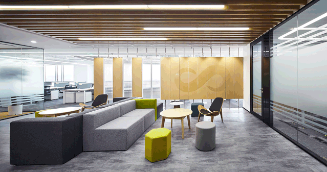 本案標準化辦公區(qū)秉持高效,功能交融,彈性多變的原則,設置大開敞辦公區(qū),多功能培訓室,會議室,經理辦公室等空間,聯(lián)結其他功能配套區(qū)。辦公空間的開敞、通透從普遍客觀立場而言是希望帶來環(huán)境氣氛上的舒適、放松。