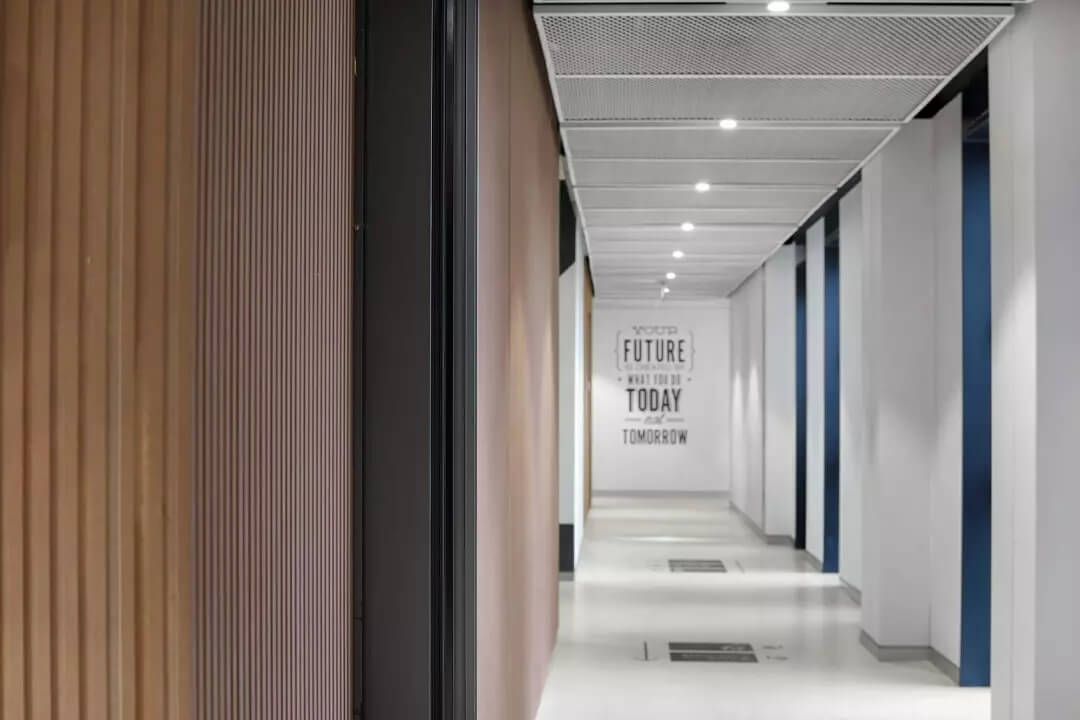在呈現(xiàn)綠色生態(tài)之外,我們想要現(xiàn)代科技隨處可感觸可體驗(yàn),所以在整個(gè)辦公區(qū)域內(nèi),融入了人臉通行、數(shù)字化管理、辦公會(huì)議共享預(yù)定以及會(huì)議無線投屏等功能,再加上手機(jī)搖一搖的開門技術(shù),讓人和空間時(shí)刻都能進(jìn)行智能互動(dòng)。