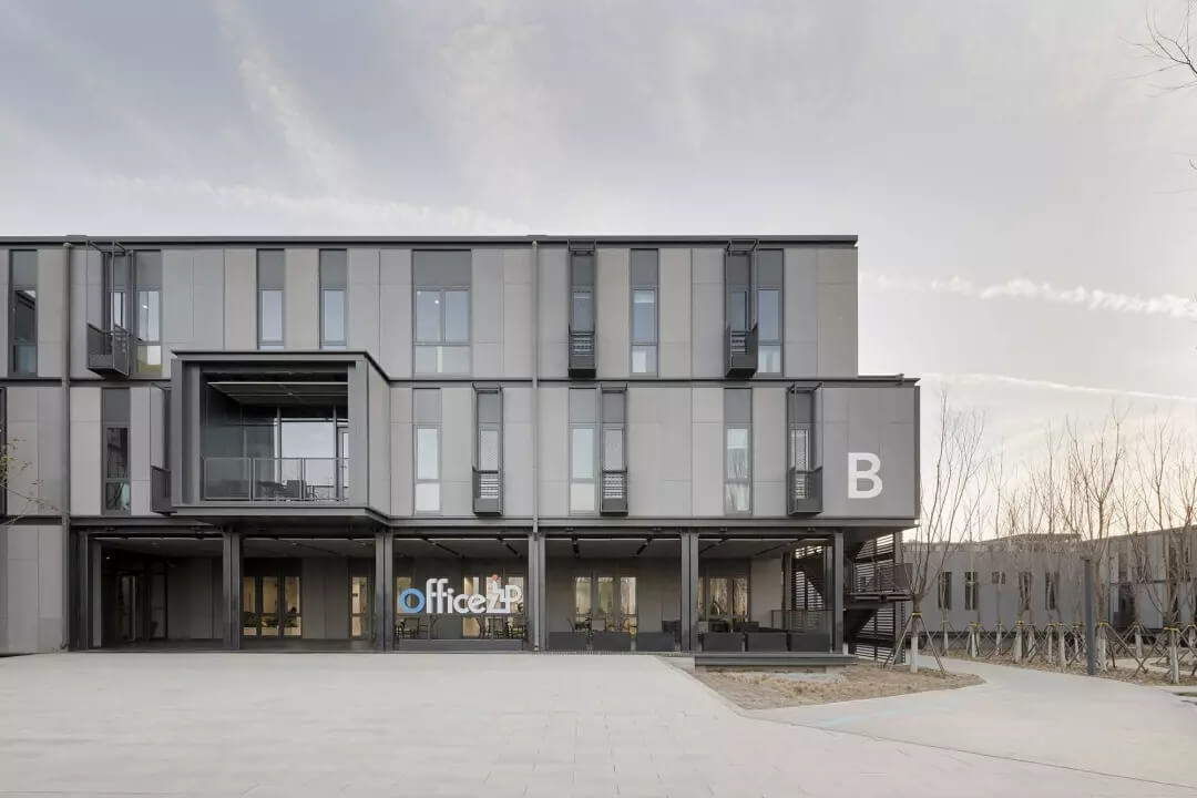 在雄安市民服務(wù)中心這塊占地面積廣達(dá)9.96萬平方米的新生沃土上,有序林立著公共服務(wù)區(qū)、行政服務(wù)區(qū)、生活服務(wù)區(qū)、入駐企業(yè)辦公區(qū)四大建筑群落。而當(dāng)落眼于其中入駐企業(yè)辦公建筑群落中的B棟Officezip時(shí),不禁感受到從內(nèi)而外綻放著的生態(tài)綠意。