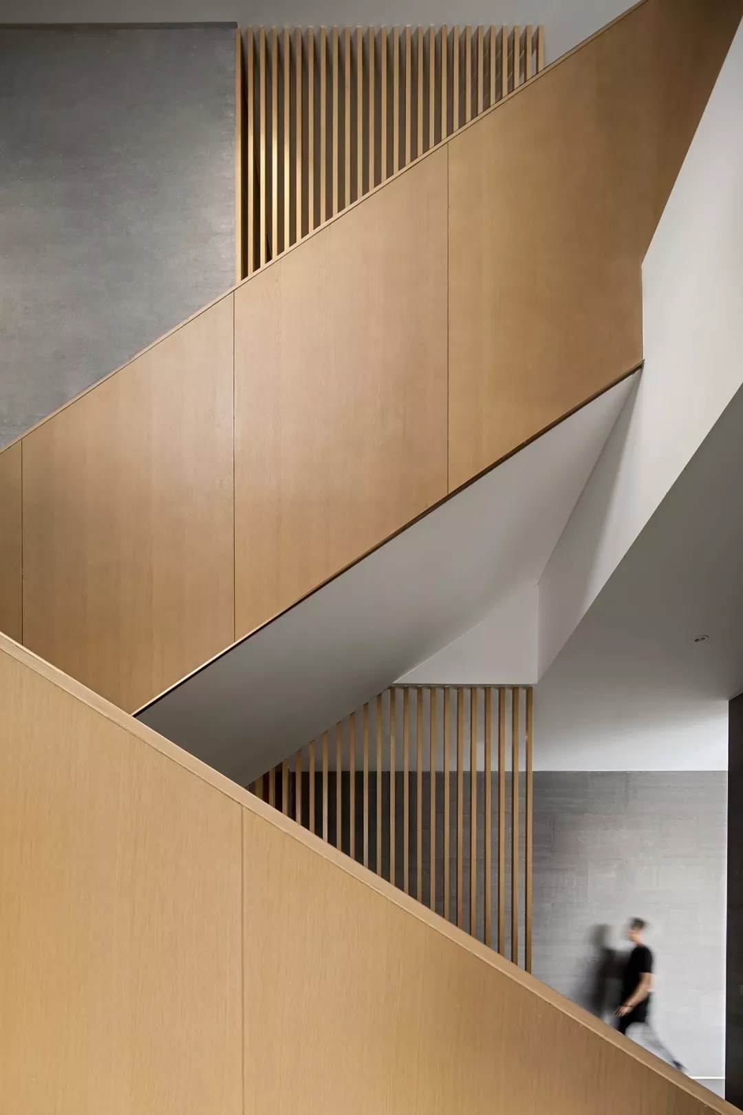 考慮到實用性與安全性,空中連廊處以玻璃扶手作為有力支撐,外圍予以木格柵裝飾,整體用色克制統(tǒng)一,在極具秩序感的光影里,彰顯了設計師一貫簡約純粹的風格。