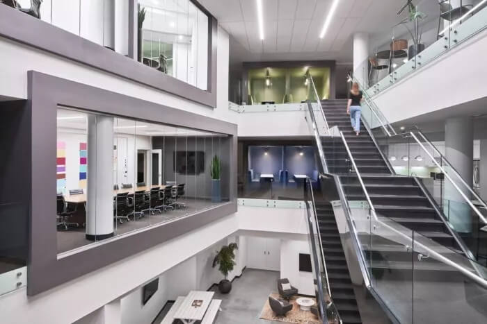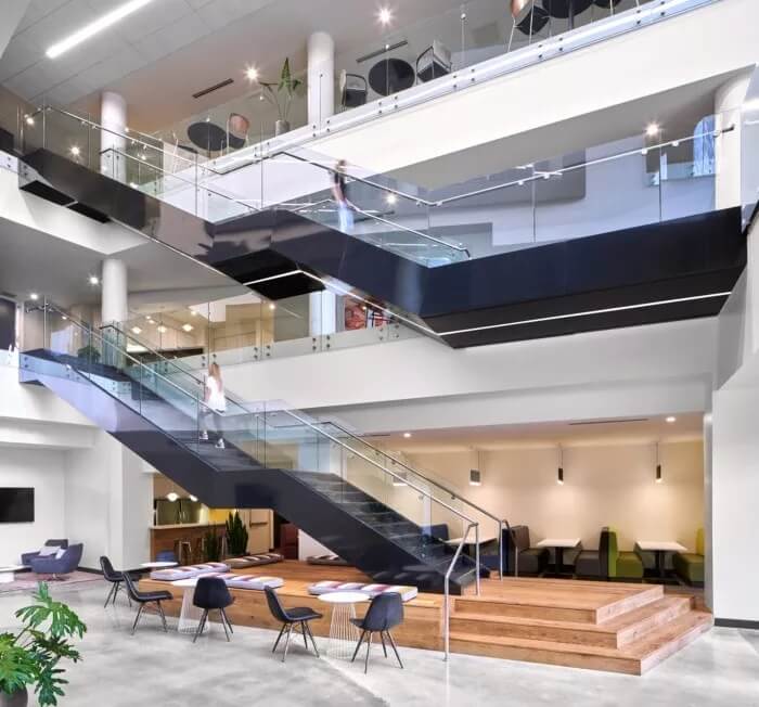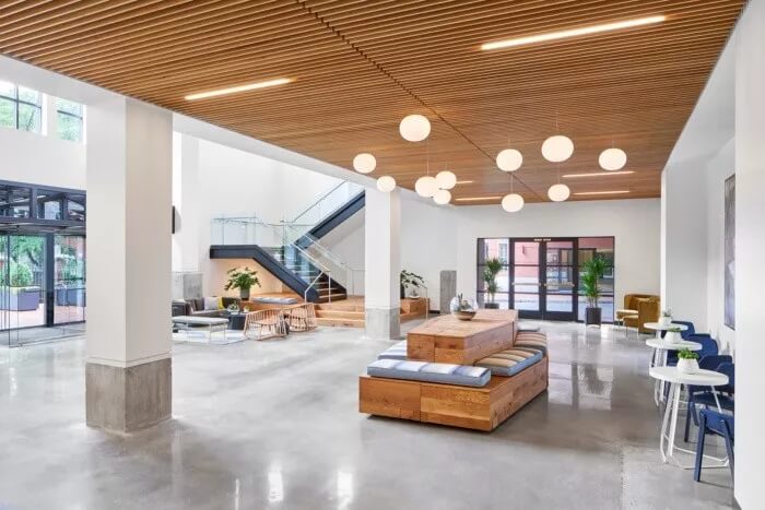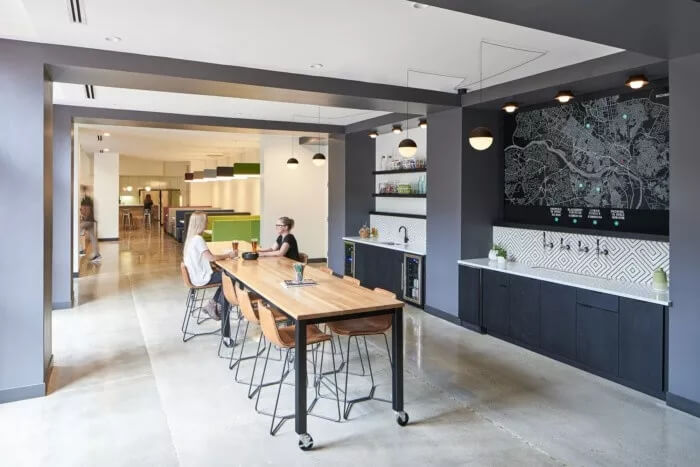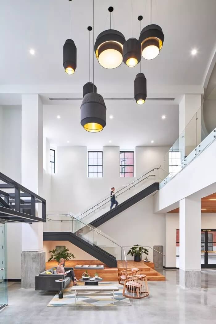 在整體美觀方面,3north剝離了裝飾性金屬制品,并將空間恢復(fù)為天然材料,干凈的線條和充足的自然光線。螺旋樓梯(一直是瓶頸交通的源頭)被拆除并簡化了形式和材料調(diào)色板。拋光混凝土地板和裸露的天花板為經(jīng)典,現(xiàn)代設(shè)計做出了貢獻(xiàn)。在整個過程中,該建筑向后退一步,將焦點(diǎn)放在本地藝術(shù)和手工藝上。這是一個為員工本人打造的空間,無論員工的工作方式,當(dāng)前的心情或聚會的方式如何,他們都可以高效地工作,而且最重要的是可以激發(fā)靈感。