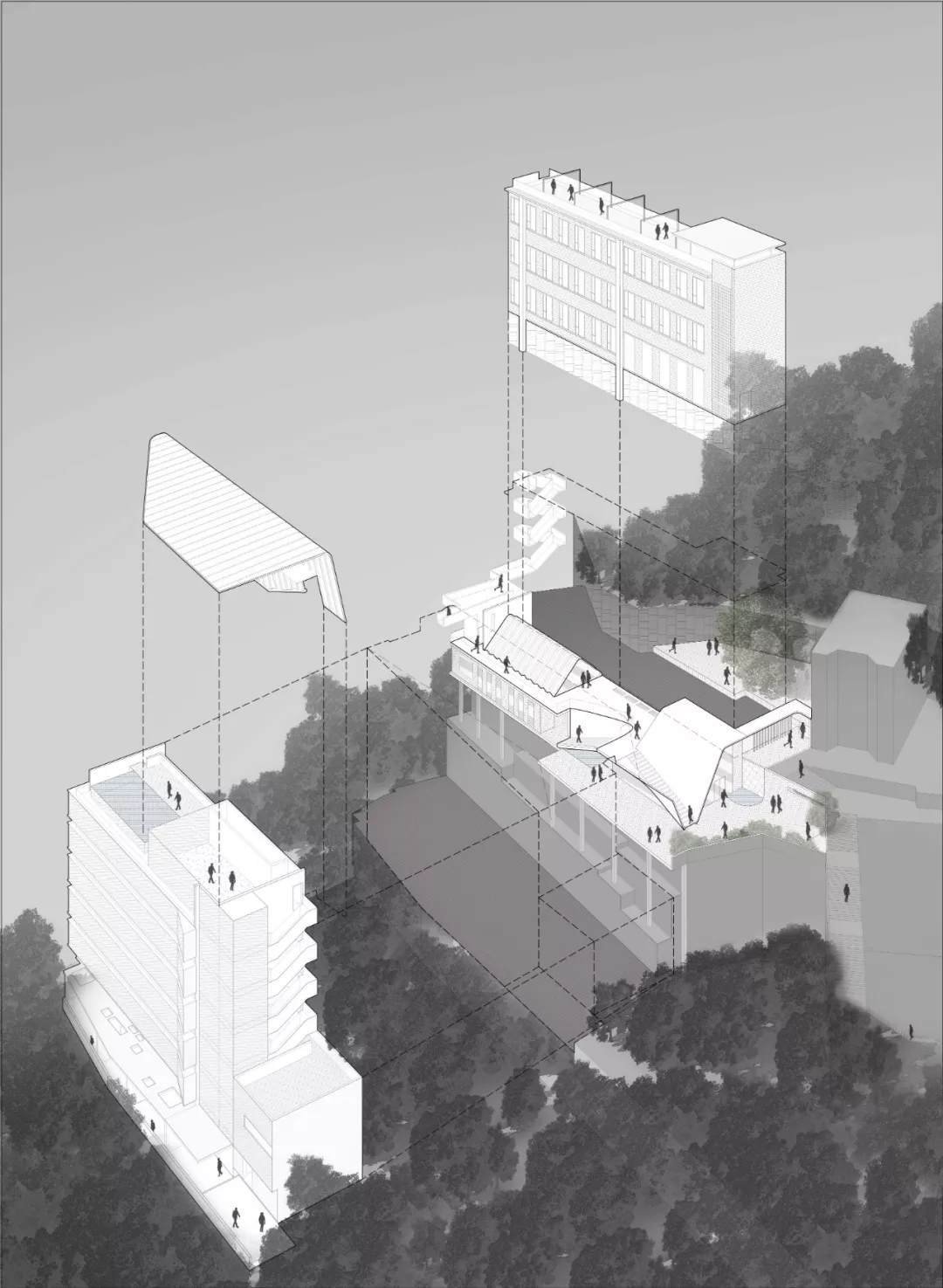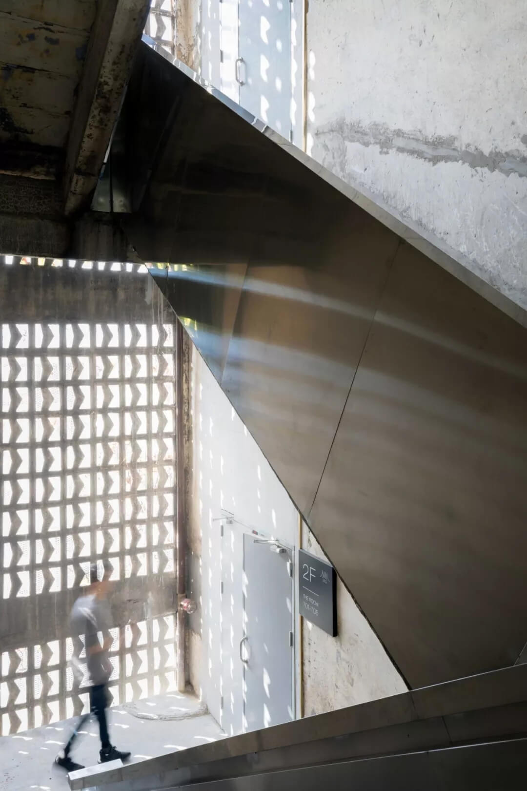山鬼Mont Mirage邀請杭州尋常設(shè)計Usual Studio擔(dān)綱本次解放碑店的建筑及室內(nèi)設(shè)計,由主創(chuàng)設(shè)計師林經(jīng)銳操刀,該項目位于重慶市渝中區(qū)枇杷山后街影視產(chǎn)業(yè)園舊印制一廠,兩幢主體建筑順應(yīng)地勢,一前一后,高低有序地坐落于坡地之上,直面壯美長江,俯瞰兩座大橋之間的綠洲,飽覽城市天際線。