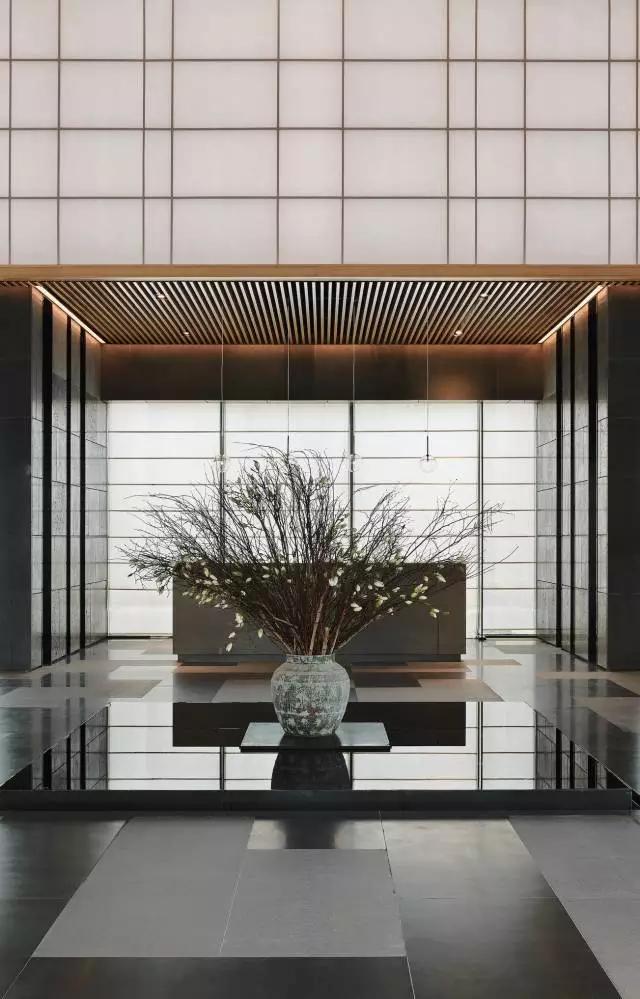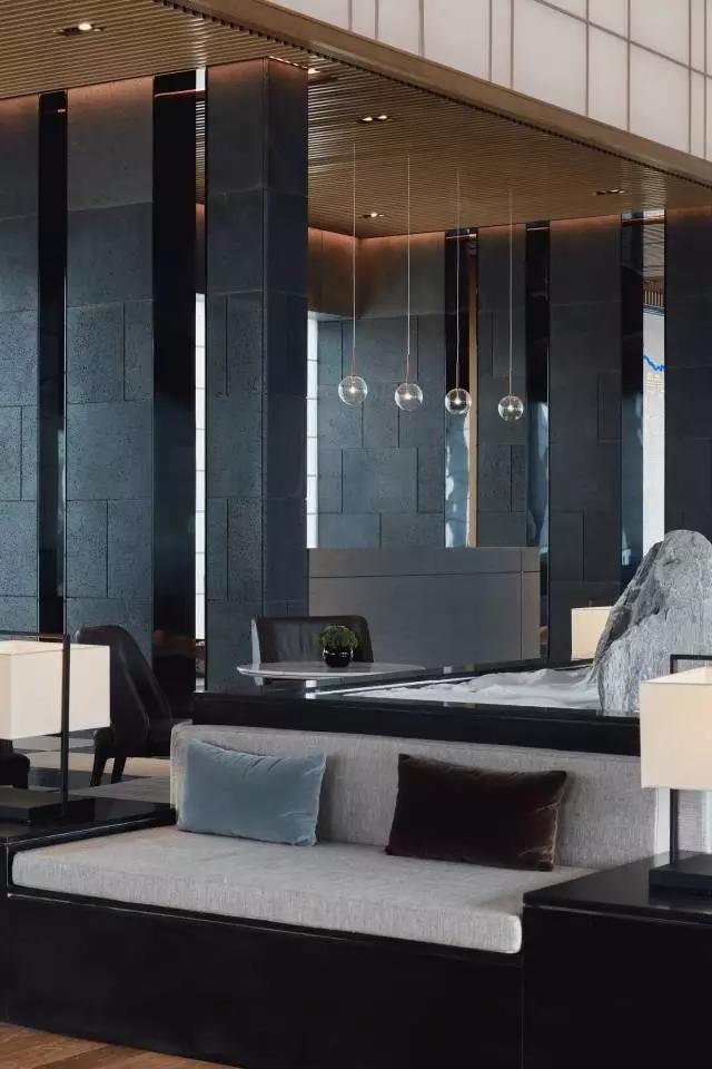 借由東方園林式的假山,打造出“未若柳絮因風(fēng)起”的雪景,美如水墨畫(huà)、細(xì)膩至極。這與圍繞式洽談方式布置相結(jié)合,巧妙處理好空間形態(tài)和陳設(shè)之間的關(guān)系。大尺度挑高設(shè)計(jì),加上頂部有序交互的線條,讓空間極具延展性,通透敞亮的照明效果搭配藝術(shù)性燈光點(diǎn)綴,使整體氛圍更顯大氣與品位。該空間通過(guò)主體、功能位置、通透的序列式的立面關(guān)系,自然分割空間視線,同時(shí)又實(shí)現(xiàn)了將光線引入到室內(nèi)的最大化。